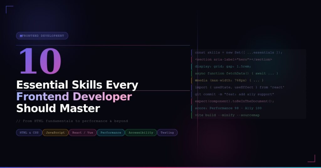 Frontend development has never been more exciting โ or more demanding. With new frameworks launching every year, AI tools reshaping workflows, and user expectations at an all-time high, staying sharp requires deliberate skill-building. Whether you’re just starting out or leveling up your career, these 10 skills are non-negotiable.
